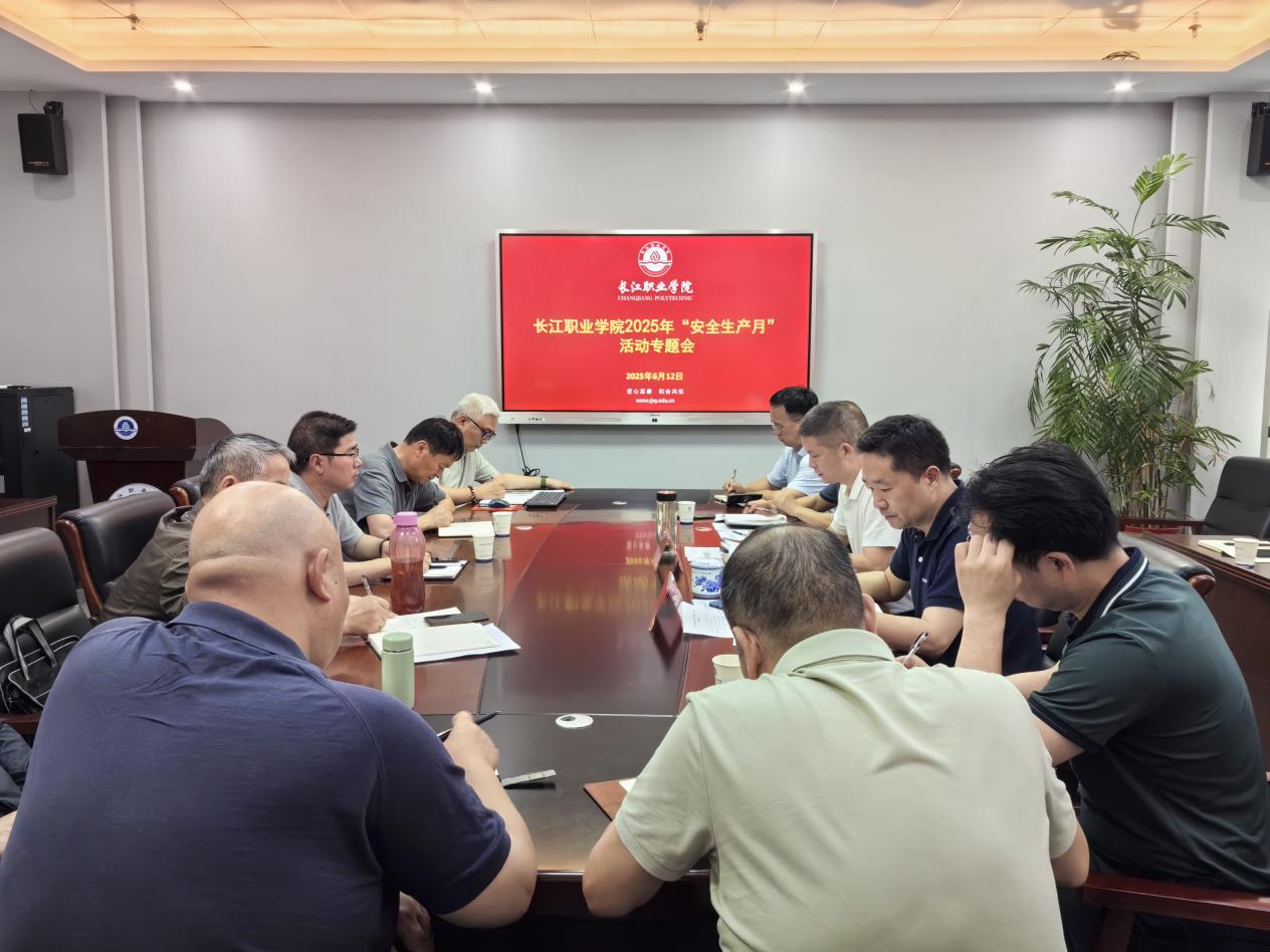 本网讯 6月12日,长江职业学院在武汉新城校区召开2025年“安全生产月”活动专题部署会,吹响“大宣传、大排查、大整治、大演练、大提升、大协同”安全行动集结号。党委委员、副校长李丹讲话,党委委员、纪委书记张术平主持会议并强化落实要求。