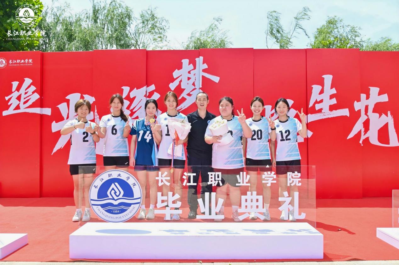 长职女子排球队在刚刚落幕的2025年湖北省大学生(高职高专组)排球比赛中,以三连冠的辉煌战绩荣耀加冕。典礼上,一段记录她们赛场拼搏、团结协作的视频震撼播放,激励着每一位即将毕业的学子。校长亲自为女排队员们颁发奖牌。这一时刻,女排精神与毕业典礼的主题交相辉映,共同构筑了一座精神的丰碑,引领着长职学子在未来的道路上继续发扬拼搏精神,勇攀人生高峰。