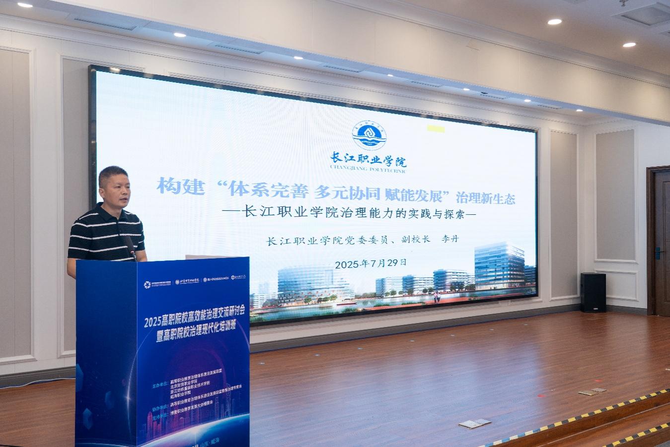会上,李丹代表长江职业学院以《构建“体系完善 多元协同 赋能发展”治理新生态》为题,从筑牢治理“四梁八柱”、激发治理“源头活水”、释放治理“乘数效应”等三个维度分享学校在高效能治理方面的做法与成效。他指出长江职业学院的治理探索,是一条“以体系固本、以协同聚力、以数智赋能”的特色之路;“长职之治”的活力,源于对制度生命力的敬畏,对多元主体创造力的激发,以及对技术变革驱动力的拥抱,并通过持续优化学院内部治理结构与运行机制,提升学校治理水平与治理效能,促进学院高质量发展。