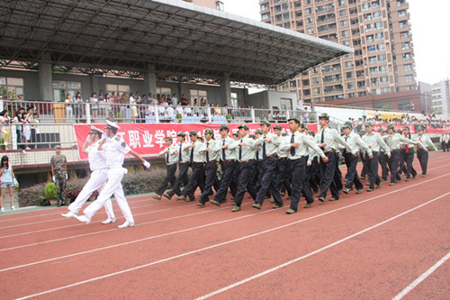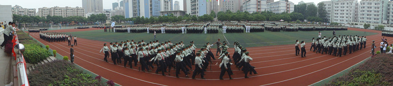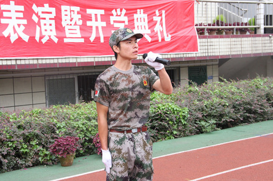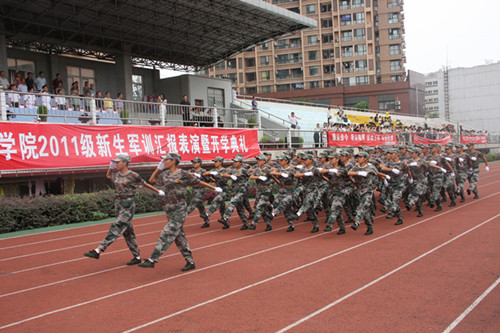 上午9:00, 4300余新生身着迷彩服,列队进场。他们英姿飒爽、意气风发、迈着矫健的步伐、喊着响亮的口号、进行列队表演训练,接受校领导和部队领导的检阅。半个月的军训,磨练了意志、强健了体魄,培养了团队精神,新生精彩的表演赢得了阵阵热烈的掌声,会操中体现的吃苦耐劳、不畏艰难、勇于挑战的拼搏精神,让老师和承训官兵感到十分满意。