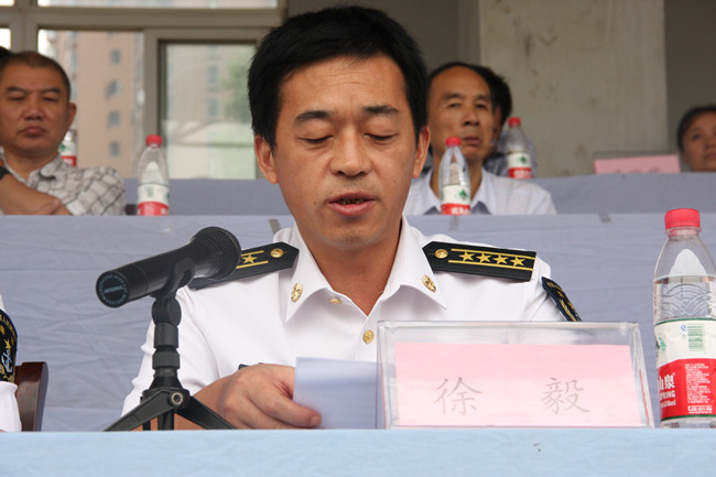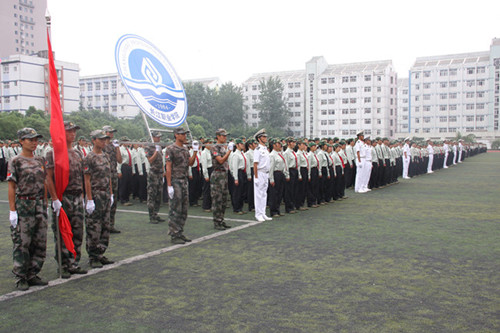 海军工程大学徐毅旅长在讲话中,希望新同学发扬军训中不怕吃苦精神,把自己锻炼成为优秀的时代青年