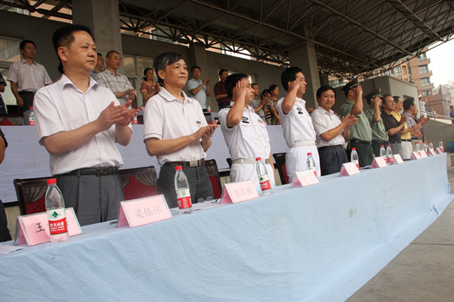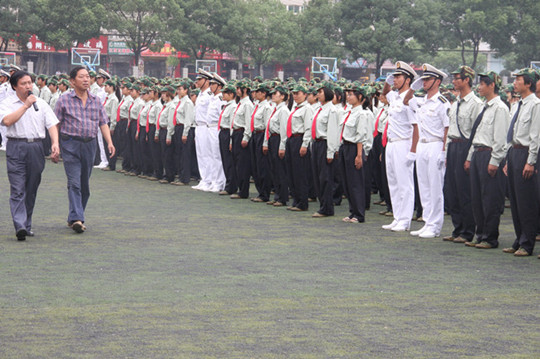 本网讯 9月16日上午,我校在运动场隆重举行了2011级新生军训会操大会暨开学典礼。校领导李永健、张汉铭、杨敬华、梁银怀、马发生、王学梅、章汛以及部分中层干部、海军工程大学领导、教官,洪山区人武部领导等来宾出席典礼。副校长王学梅主持大会。