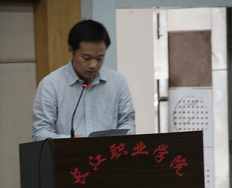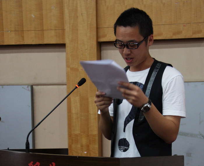 工学院教师邓柳代表优秀教师、客座教授王金华代表优秀兼课教师、艺术学院辅导员田翔代表优秀辅导员、校后勤集团宿管中心主任钱进东代表优秀教育工作者、经管院09级学生于大海代表全校学生分别在会上发言。