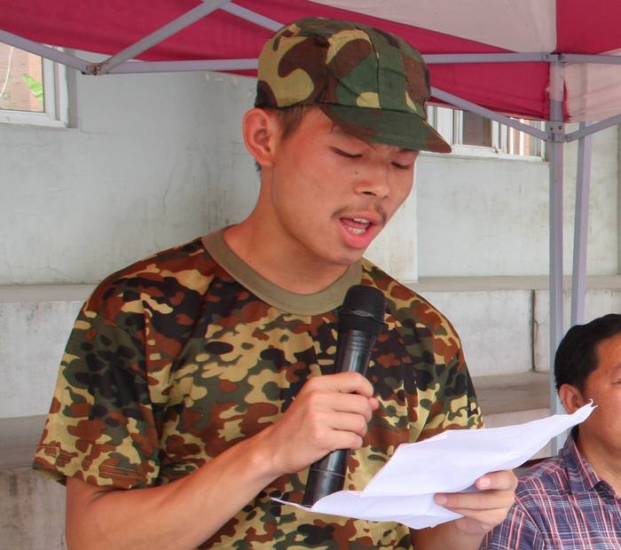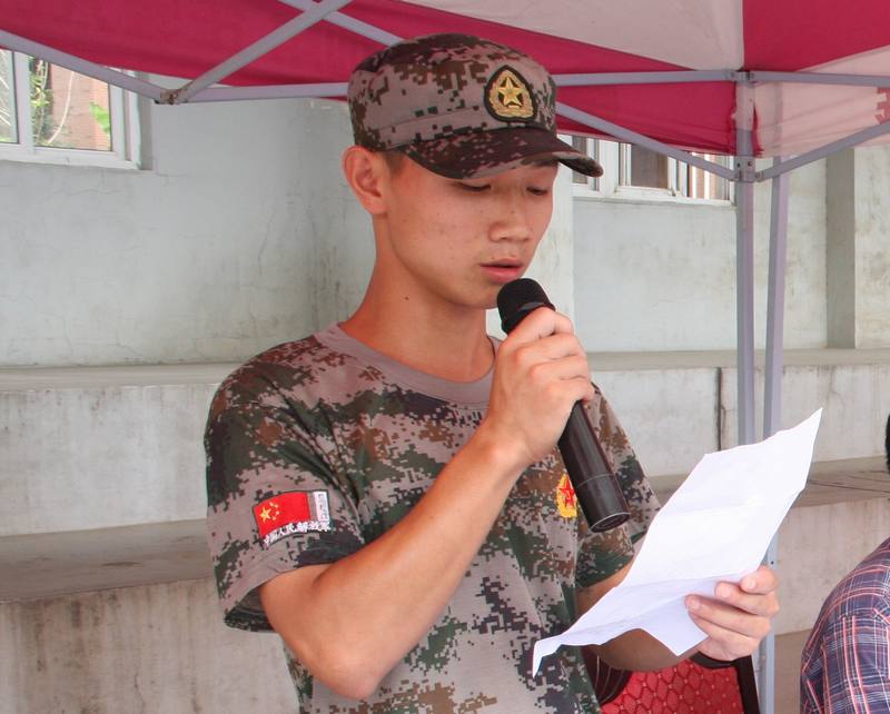 大学生雷锋连的学生教官代表发言