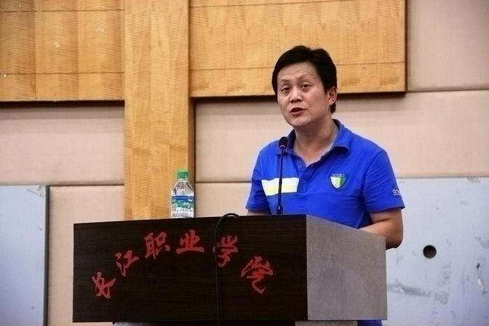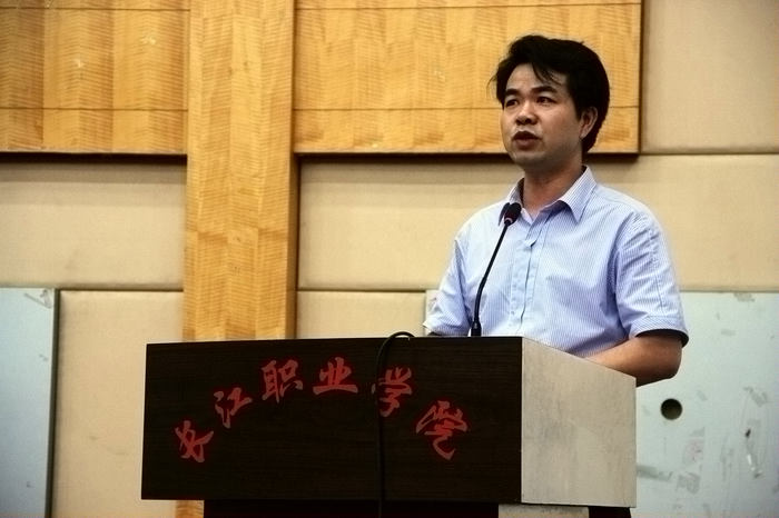 副校长杨敬华向全体教职工传达全国高职校长培训班精神,分析我校教育教学改革的思路