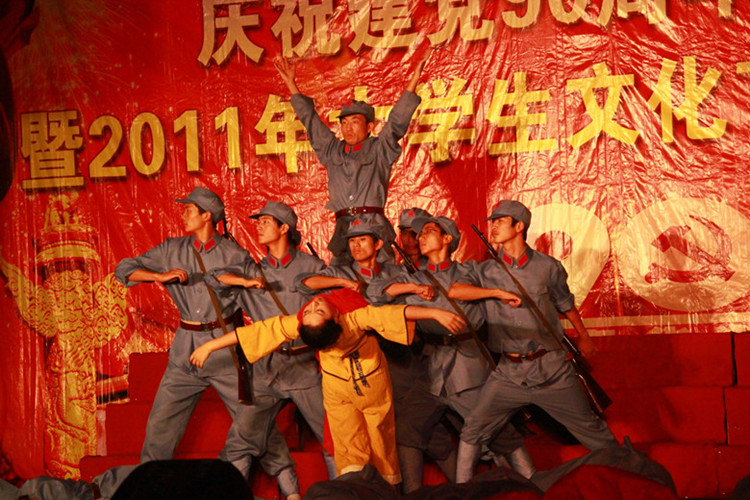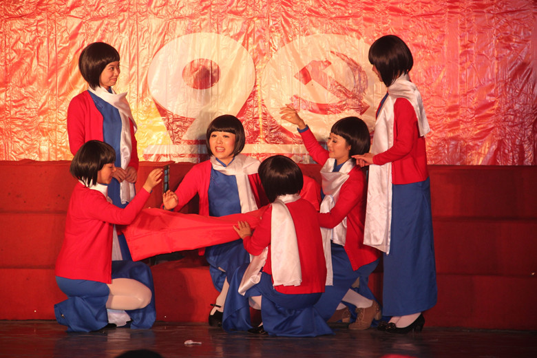 图为艺院、外院、学工部共同参演大型歌舞《红色礼赞》
