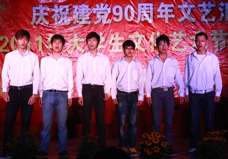 经典革命舞蹈《红星闪闪》演出完毕,经管院一首《年轻的朋友来相会》将90后新一代的风采完美展现,表达出莘莘学子要求奉献祖国的迫切希望;工学院的《中国军魂》则唱出了军人心中对祖国母亲深深的热爱;旅外院《我的未来不是梦》展示了当代大学生的激情、活力和希望;艺术学院的《蒙古人》将蒙古汉子的柔情抒发的淋漓尽致,从《山间小路》蜿蜒而来的歌声让观众陶醉,随着旋律低吟起来。