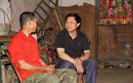 党委书记李永健在大悟山村张文冲湾贫困户徐全周家中与其促膝交谈,了解孩子教育和妻子的病情后,表示将尽力提供帮助
