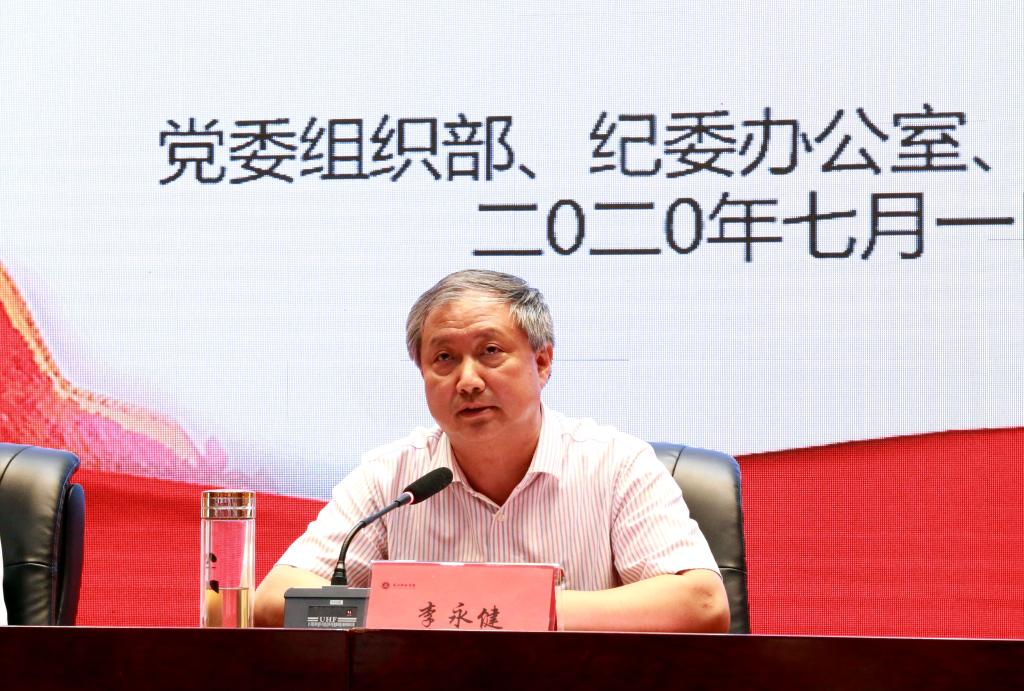 李永健围绕“严”字当头,坚持把从严治党工作全面推向深入,提了六点要求:一是要始终坚持“严”的主基调,坚定不移地按照习近平总书记“把严的要求贯彻到管党治党全过程、落实到党的建设各方面”的要求,落实落细省委、省纪委、省委教育工委、省教育厅党组关于全面从严治党的各项决策部署,坚持稳中求进工作总基调,建立起从思想到行动、从决策到落实、从领导干部到普通党员三个维度的从严体系,为赢得疫情防控和学校事业发展的双胜利提供坚强保证。二是要深入贯彻新时代党的建设总要求,贯彻落实好《党委(党组)落实全面从严治党主体责任规定》,把正确的政治方向、价值导向贯穿办学治校、教育教学、人才培养等工作的各方面各环节,加强制度体系建设,使从严治党不留“空挡”,不存死角,真正做到“全面”。三是要始终坚持党管干部、严管干部原则,教育引导各级干部严格按照制度履行职责、行使权力、开展工作,严格按照新时代“好干部”标准用好用活选人用人机制,坚持正确用人导向,发现和培养一批政治强、业务精,勇于担当、善于作为、实绩突出的好干部。四是要从严落实新时代的组织路线,正确理解新时代党的组织路线的科学内涵和实践要求,压实基层党建责任,继续深入开展“对标争先”与新时代高校党建示范创建和质量创优等活动,深入推进教师党支部“双带头人”培育工程,全面提升基层党组织建设水平。五是要从严抓好师德师风建设,聚焦立德树人根本任务,把师德师风建设摆在教师队伍建设首要位置,建设一支符合“四有”好老师、“四个引路人”、“四个相统一”要求的过硬教师队伍。六是要严格日常监督与问责,以高度的政治自觉把监督执纪任务落到实处,督促学校各级党组织落实全面从严治党政治责任,压紧压实主体责任,形成“失责必问、问责必严”常态,特别是对高风险领域的防控及“四风”隐形变异等动向要加强针对性监督,着力构建不敢腐、不能腐、不想腐的政治生态。