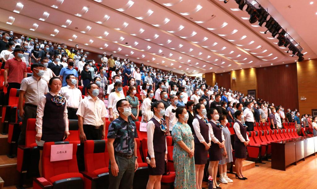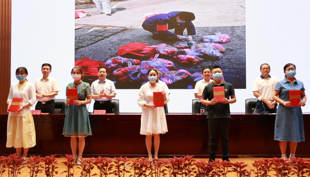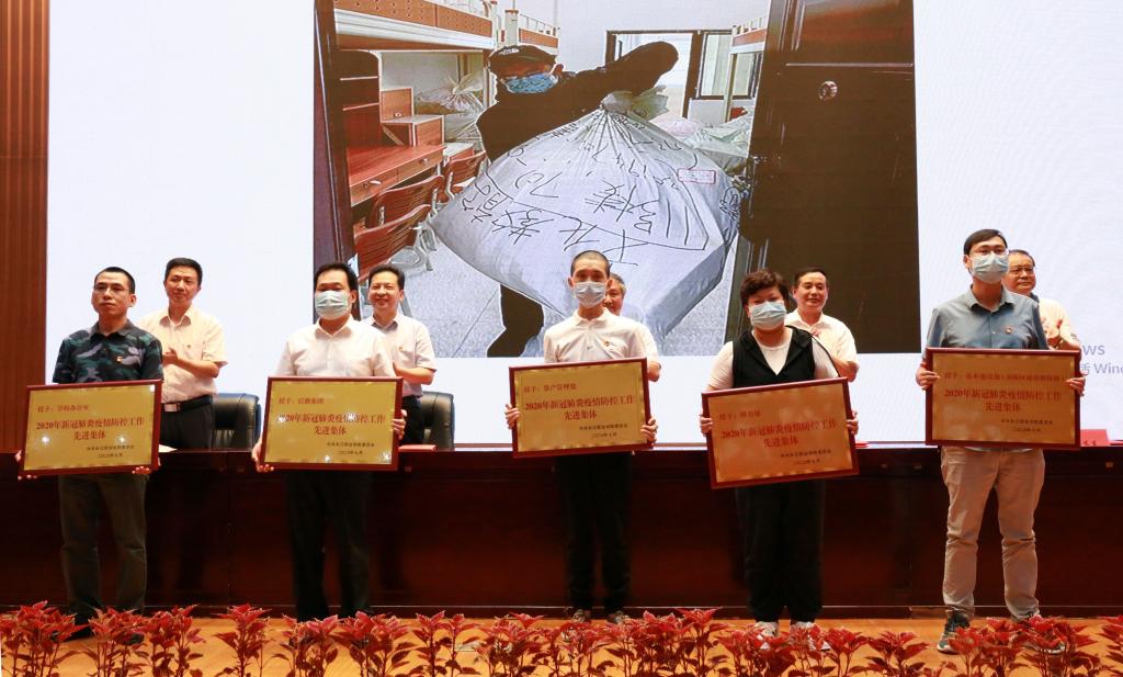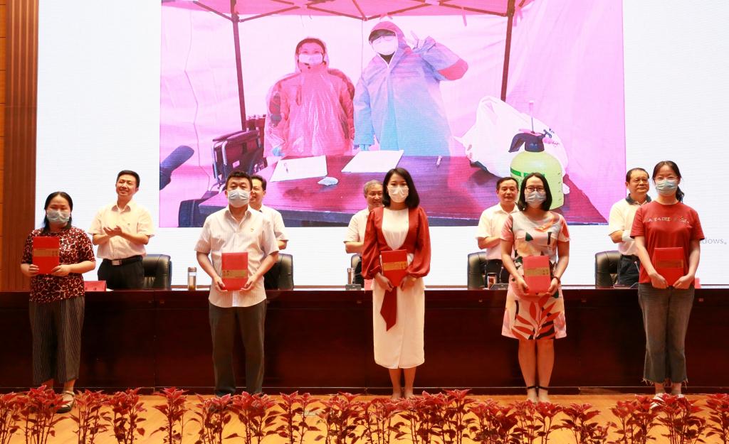 大会在庄严雄壮的国歌声中开始,马发生同志首先在大会上宣读了校党委关于抗疫工作先进集体和个人的表彰决定,学校办公室等5个抗疫先进集体和潘逸等127名抗疫先进个人受到表彰,与会校领导为受表彰的先进集体和个人代表颁发了奖牌和荣誉证书。
