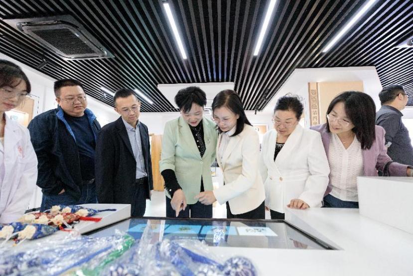 随后,刘红霞一行在童静菊等的陪同下,实地考察了长江职业学院花湖临空经济学院、医药护理学院等实训基地,现场观摩实训教学活动。在中医药博物馆,刘红霞一行参观了中药文化、中药标本等展区,沉浸式体验了中草药辨识系统、智能沙盘控制等高科技互动系统。