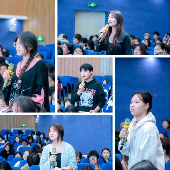 随着童静菊的讲述,一幅幅中国式现代化的壮丽图景在学生们眼前徐徐展开。从高铁飞驰的便捷,到航天器遨游的壮阔,从智慧城市的便捷高效,到绿水青山的美丽画卷,每一项成就都是对“这就是中国”最生动的诠释。“想象一下,2029年的中国,将是怎样的一番景象?再到2035年,我们又将站在怎样的历史高度?”她的话语中带着憧憬,激发了学生们对未来的无限遐想,全场群情振奋,不时爆发出热烈的掌声。
