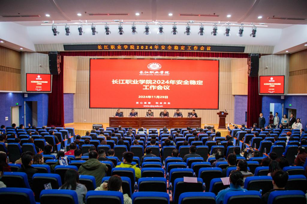 本网讯 11月29日下午,长江职业学院在武汉新城校区召开2024年度安全稳定工作会,旨在深入学习贯彻习近平关于安全生产的重要指示精神,进一步落实省委、省政府关于校园安全稳定工作的会议精神,深入分析研判当前学校安全稳定工作形势,对校园安全工作进行全面部署。全体在家校领导出席大会,校长吴昌友主持会议。