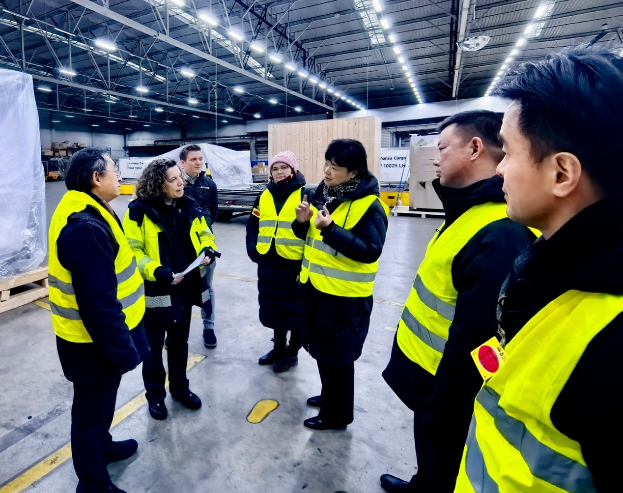 在莱比锡/哈勒机场,代表团在机场交流合作与国际关系处负责人Christoph Becker先生、机场物流中心负责人Melinda Bremer女士的带领下深入机场物流中心一线,实地考察该中心的规划布局、运营模式;与“双元制”学生亲切交谈以了解学生就业、职业规划等情况;并受花湖机场委托,向Melinda Bremer女士发出担任花湖机场国际专家的邀请。
