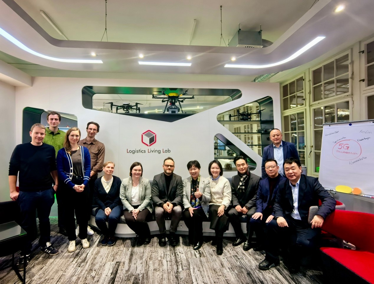 在莱比锡大学经济学院,代表团参观了物流Living实验室,与项目团队负责人Benjamin Gaunitz先生及其团队成员围绕与德国莱比锡机场、美国孟菲斯机场共建虚拟教研室和实验室的创新性和可行性开展深入探讨并达成合作意向。