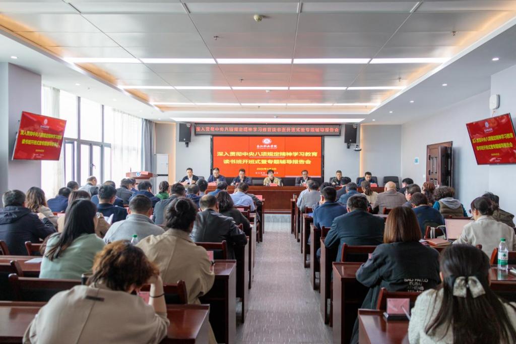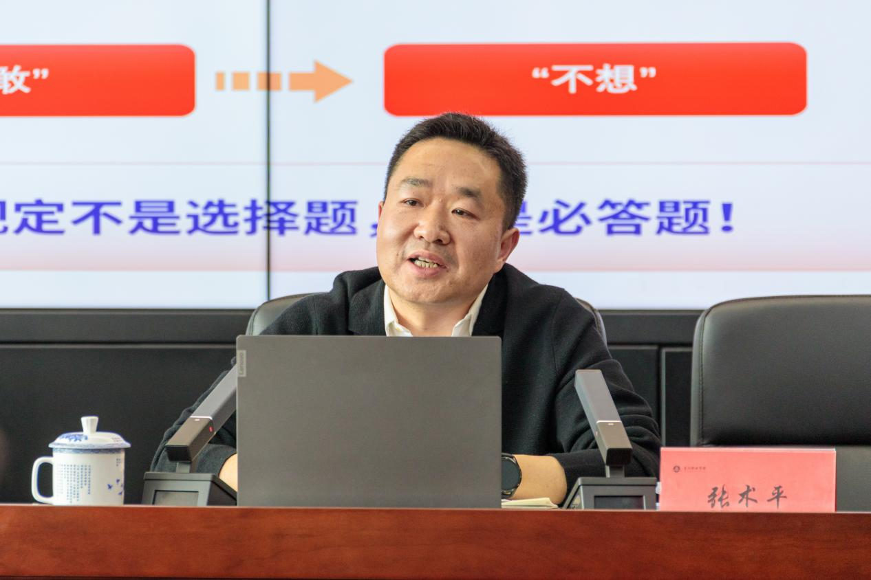 开班式结束后,校纪委书记张术平作了题为《以作风建设“赶考”之志 护航高质量发展之路》的专题辅导报告,从历史回眸、现实警示以及违反规定精神的“多种面孔”三个方面,对我们党贯彻落实中央八项规定精神的重要性和紧迫性进行了全面阐述。他在报告中特别强调了高校作风建设的重要性,高校作为培养人才的摇篮和学术研究的殿堂,必须坚决纠治存在的不正之风,营造风清气正的校园环境。