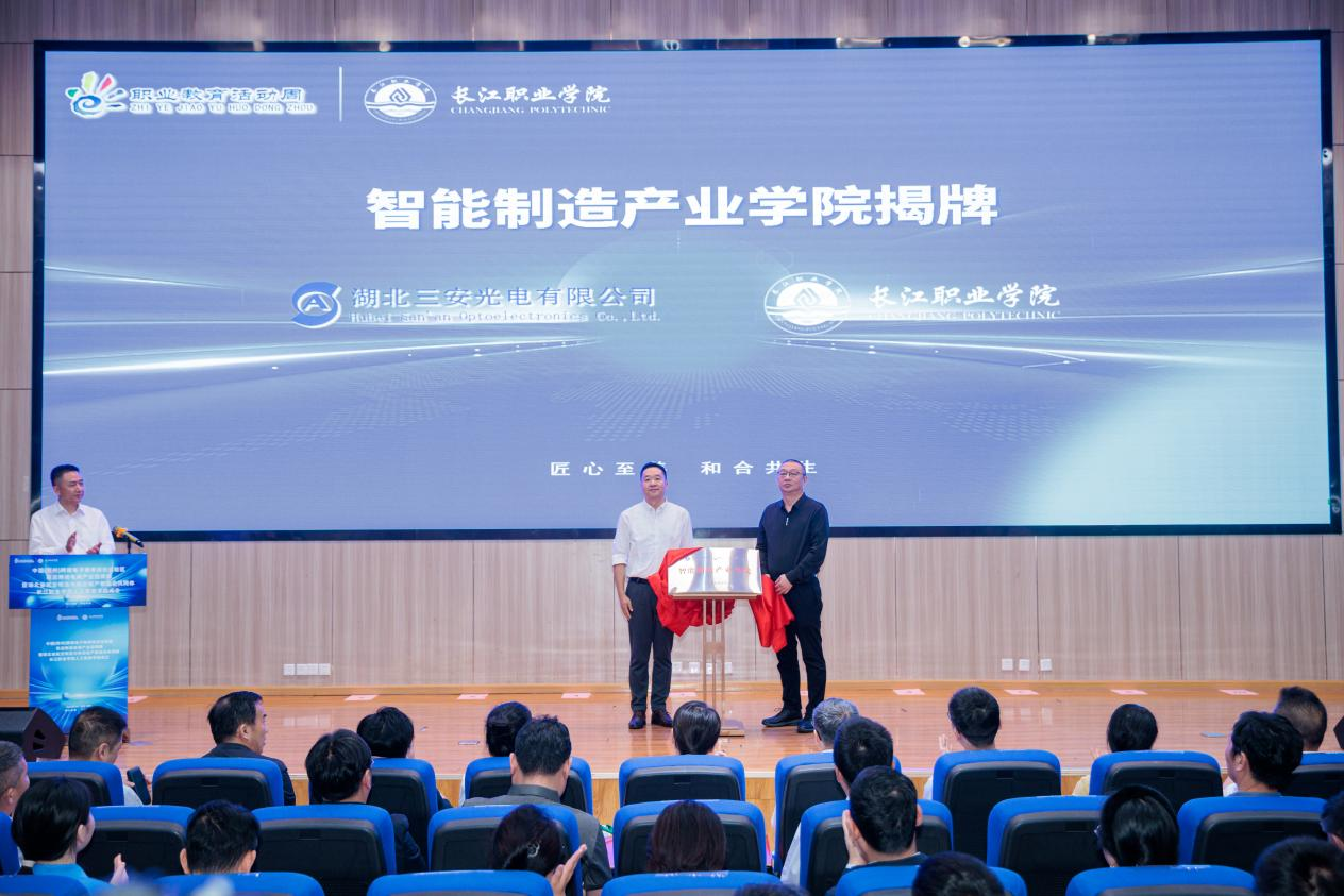 湖北三安光电有限公司副总经理许文风、长江职业学院纪委书记张术平为智能制造产业学院揭牌