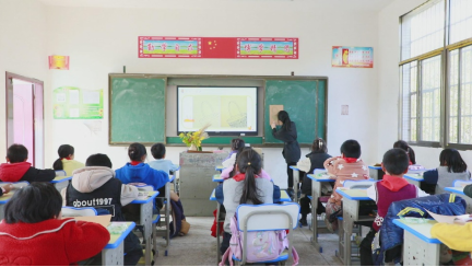学生预备党员代表涂露馨为三年级的学生上手工课