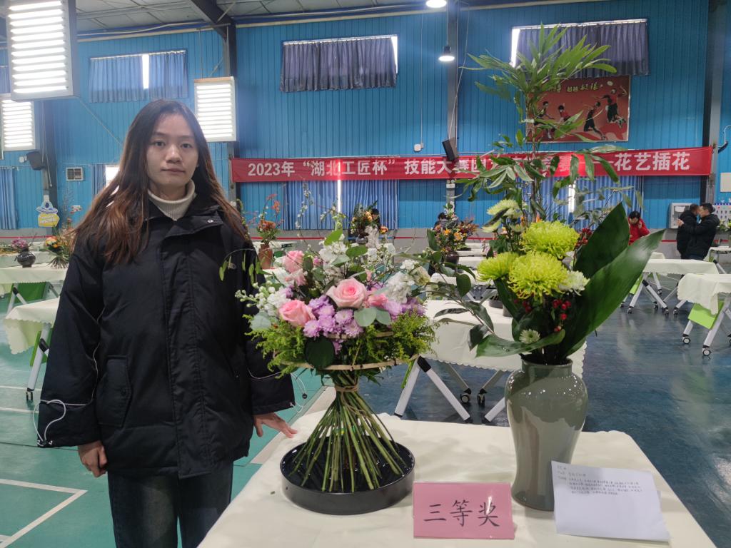本网讯12月19日,2023年“湖北工匠杯技能大赛——湖北省住建行业职业技能大赛园艺技能竞赛”(插花花艺赛项),在湖北城建职业技术学院落下帷幕。来自全省插花花艺行业从业者及相关中、高职院校的教师、学生,共计58名选手参加了激烈的角逐。长江职业学院城市建设学院环境艺术专业教师吴韦喜获第二名,获得“湖北省技术能手”荣誉称号,环境艺术专业2102班学生周娇以总成绩第五喜获三等奖。
