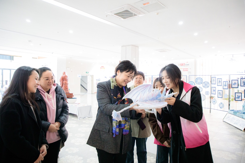展览期间,长江职业学院党委书记童静菊来到现场,对作品中流露出的创新精神和对非遗文化的尊重表示高度赞赏,鼓励学生们要持续探索,不断挖掘自身潜力,用艺术的力量滋养童心,为将来成为优秀的幼儿教育工作者打下坚实的艺术根基。