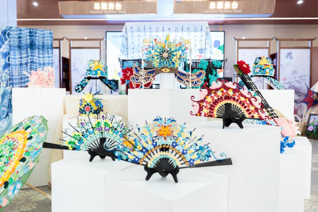 学生创作的衍纸作品(明代凤冠、扇面、乐器阮、纸伞等)