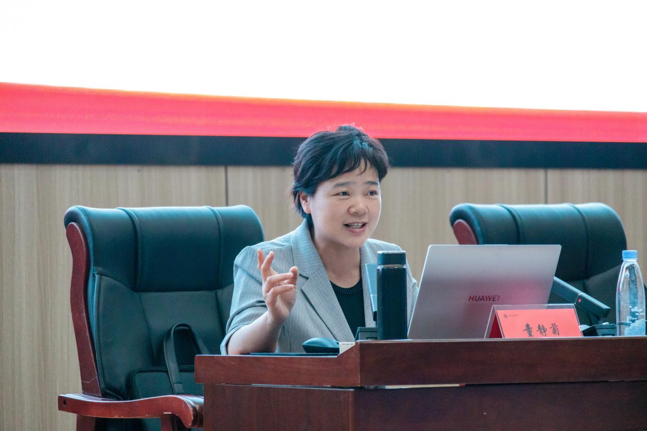 在报告中,童静菊从习近平新时代中国特色社会主义思想的世界观和方法论本质内涵入手,结合大量案例、身边榜样故事等,用通俗易懂的语言,引导青年学子树立科学的世界观和方法论。她指出,“六个必须坚持”实际上构成了一个相互联系、内在的有机整体,它为我们把握运用习近平新时代中国特色社会主义思想的精髓要义提供了总钥匙。落脚点就是你要运用它,不仅知其道更要行其道。 童静菊强调,站在人生最富活力、最具创造力的黄金时期,我们要以“六个必须坚持”为灯塔,照亮前行的每一步。她勉励青年学生要坚持人民至上,胸怀“国之大者”,展现青春作为;坚持自强自立,勇于探索创新,彰显青春风采;秉承全面发展观念,勇于挺膺担当,贡献青春力量;坚持问题导向,锻炼解决问题能力,勇担青春使命。