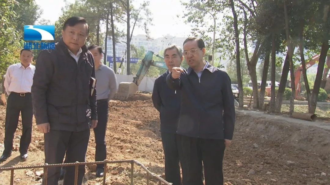 随后,蒋超良来到中南财经政法大学,察看该校截污工程施工现场。中南财经政法大学校区环湖共有4个入湖排口,其中2个有污水入湖。去年7月,武汉市启动沿湖排污口截污工程,校方也展开内部管网全面自查及雨污分流工作。蒋超良穿过泥泞的工地,走进湖边排污口,仔细查看管网施工和湖面排口情况。