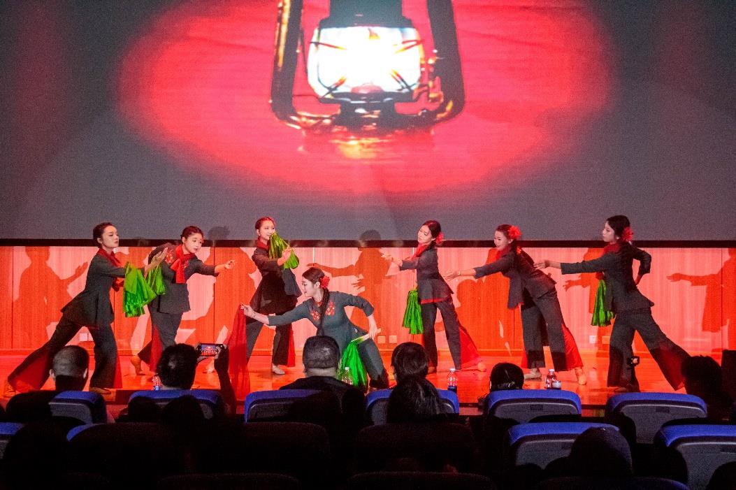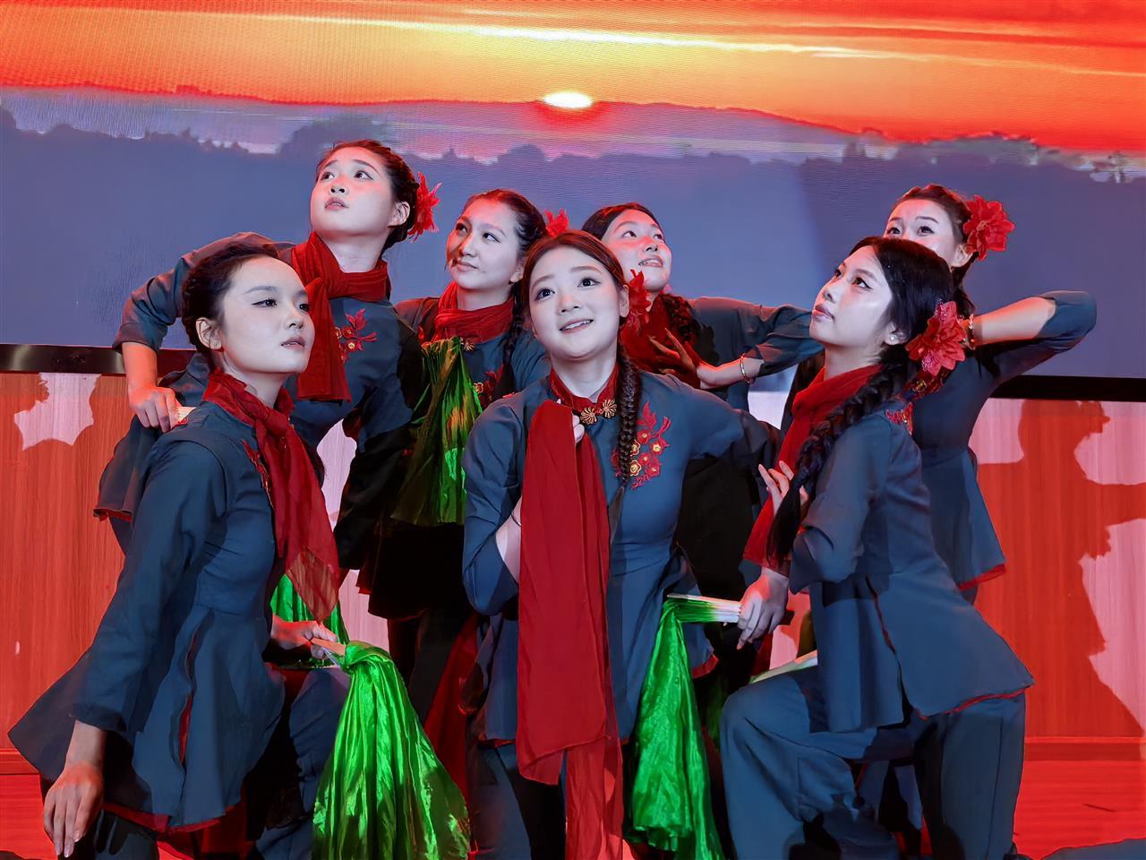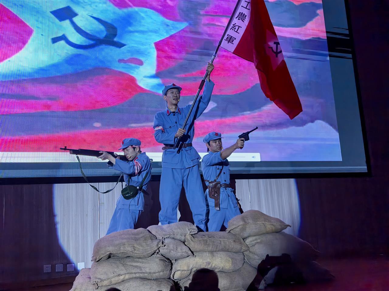 “现在,让我们共同推开历史的大门,回到梦想启航的地方……”随着主讲人深情的讲述,历史画卷徐徐展开。情景剧《杜鹃啼血》中,学生演员们高举红旗、胸佩赤化带,再现了1927年数万农民义勇军直扑黄安县城的雷霆之势;合唱《南泥湾》则以质朴的歌声,传递出根据地军民“自己动手、丰衣足食”的坚韧;舞蹈《映山红》以柔美舞姿勾勒出革命母亲“望穿秋水”的等待与守候;朗诵《火把》则用激昂的语调,重现了红安百姓高举火把、汇聚成光的洪流……