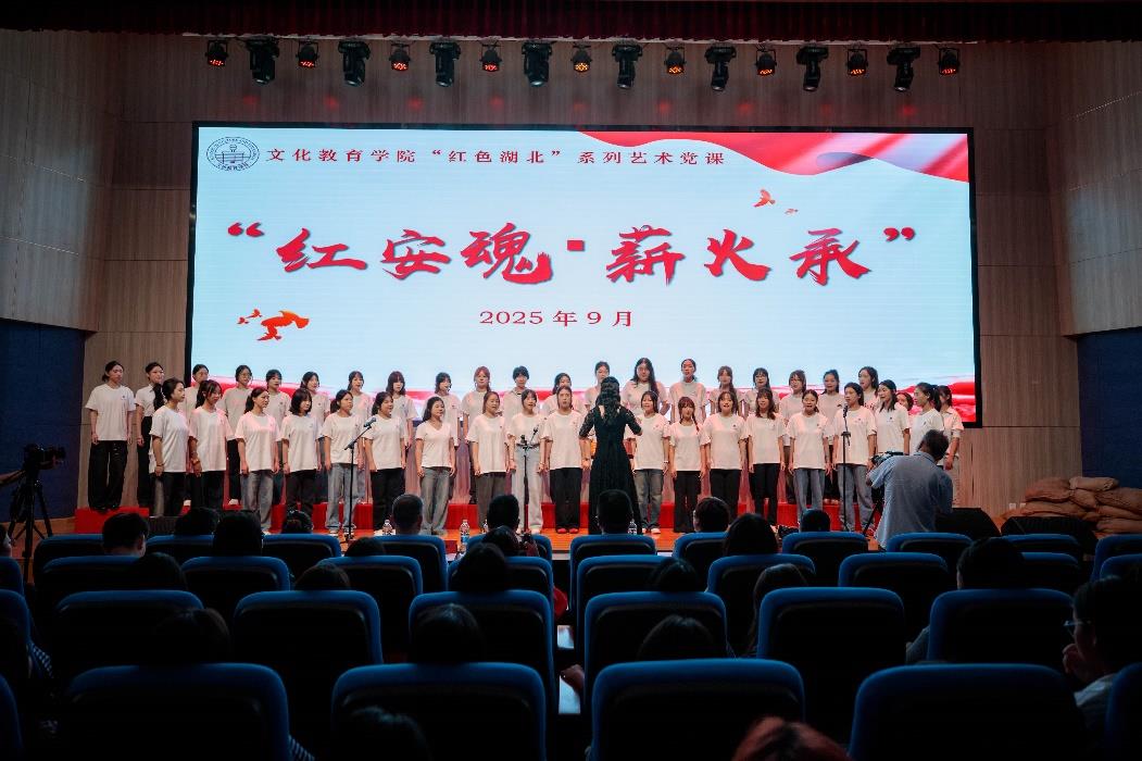 这堂党课的创作灵感,正来源于今年上半年以来该院师生奔赴红安革命老区开展的“行走的思政课”社会实践活动。师生们在实地探访、史料研读中深受触动,萌生了将所见所感转化为艺术作品的强烈愿望。文化教育学院党总支书记李德武说,这堂红色艺术党课,正是对习近平总书记考察湖北时强调要“大力弘扬大别山精神、抗洪精神、抗疫精神”重要指示精神的生动实践。