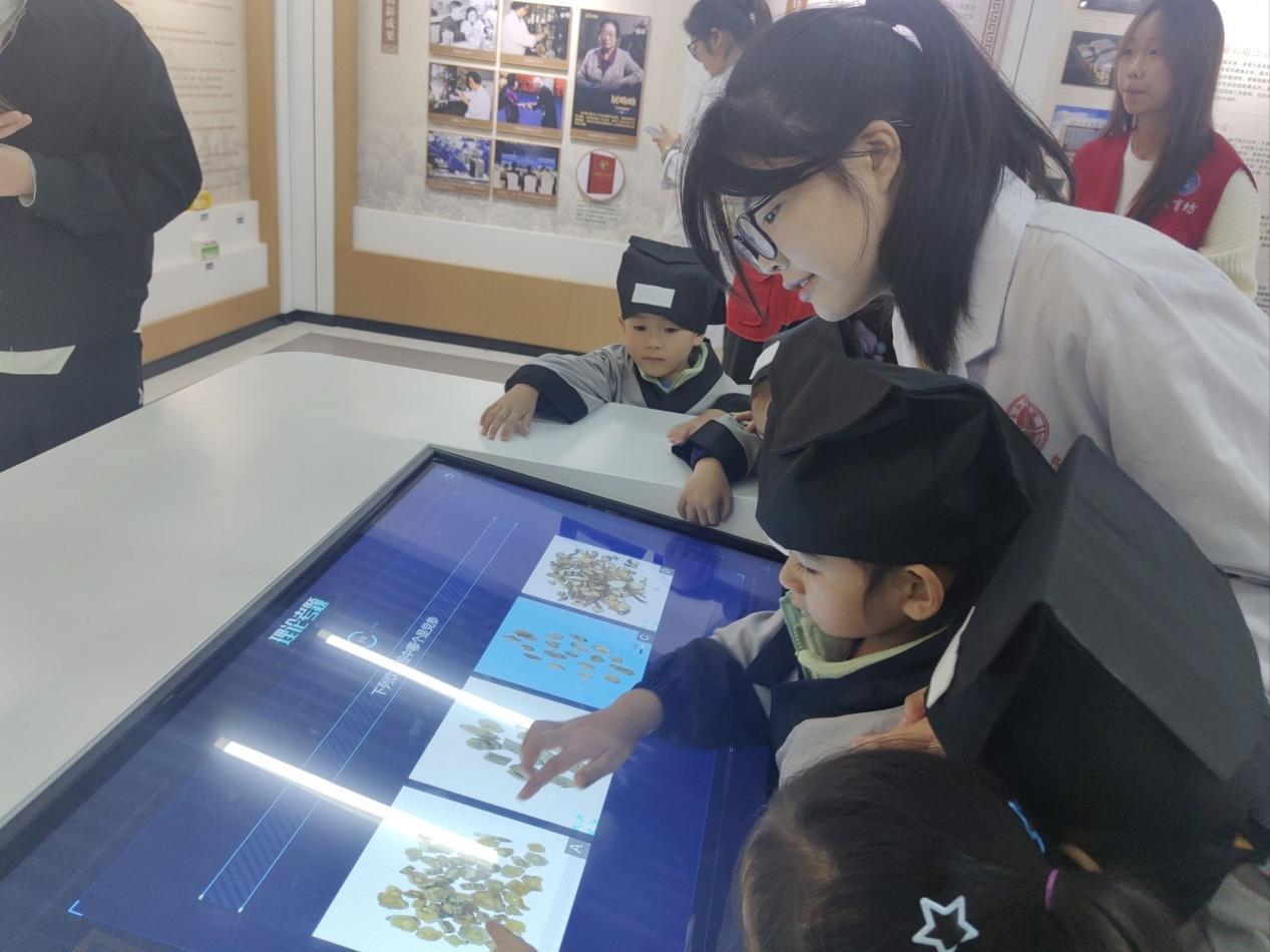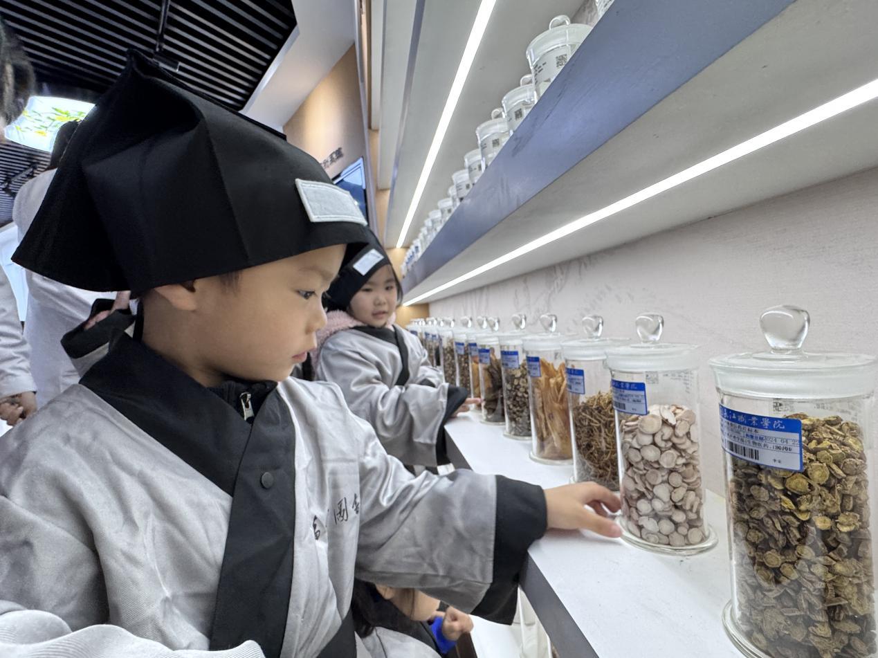 中药标本馆内,这里不仅有琳琅满目的中药标本,更配备了AI虚拟仿真与互动体验设备。百余种珍稀中药标本在AR技术辅助下“跃然纸上”,孩子们通过数字屏触摸“数字中药”,感受跨越地域的中药魅力。